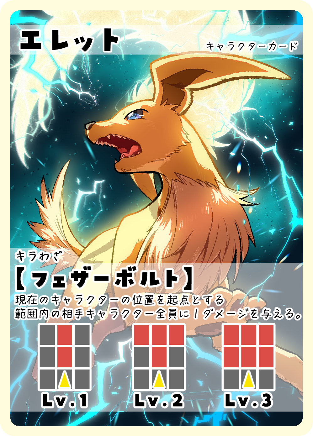 自慢のロン毛に電撃をため込み、剣に見立てて一閃するわざ。レベルで攻撃範囲が拡大!
